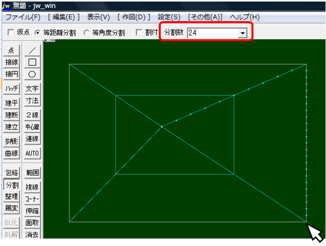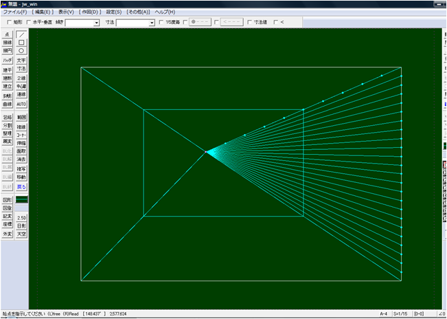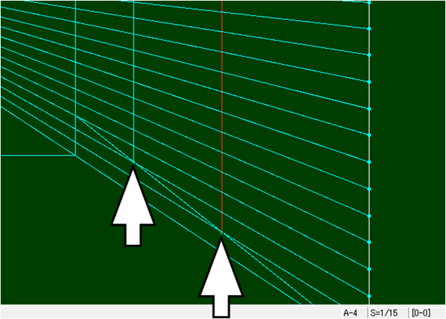 ありえない角度の交点なので手書きでは6または9分割で必要な線だけ引けば良い。