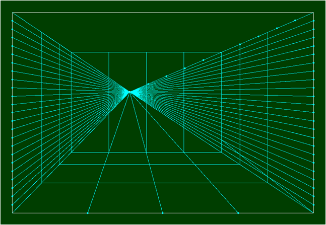 幅は4分割、奥の壁も4分割して仕上げる。消失点への遠近法、集中線の完成。