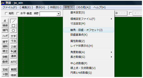 メニューバーの設定から、軸角・目盛・オフセットを選択します。