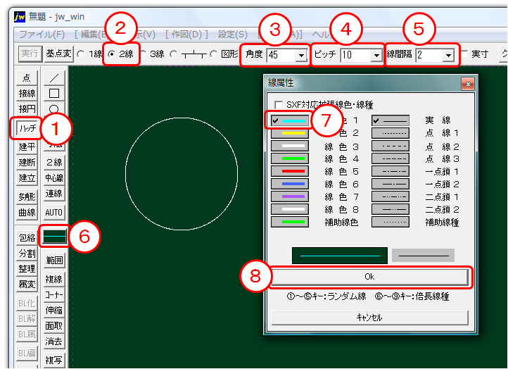 ⑨ハッチコマンドを選択して完了する。