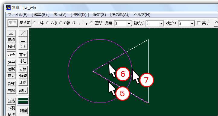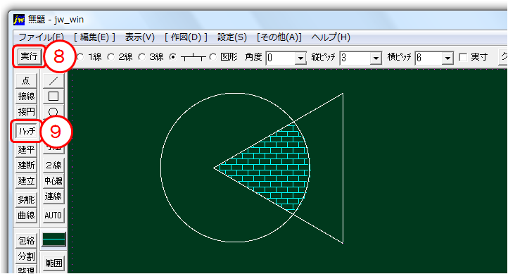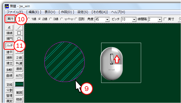 ⑨ハッチングする図形をクリック選択する。