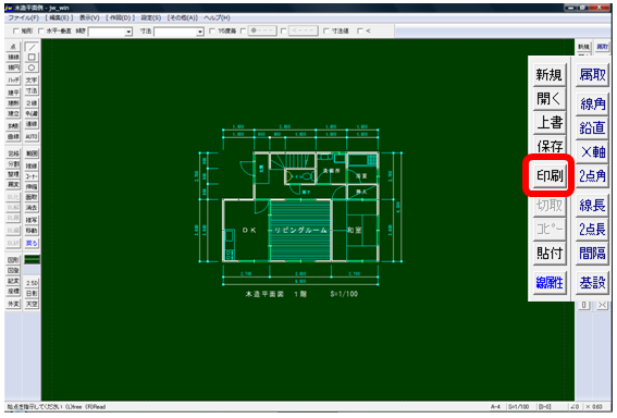 印刷したいファイルを開き、メインツールバーの印刷を選択します。
