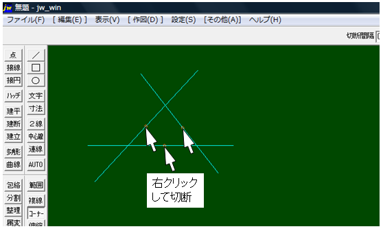 あとは、コーナー処理の要領で、残したい方をクリックする。