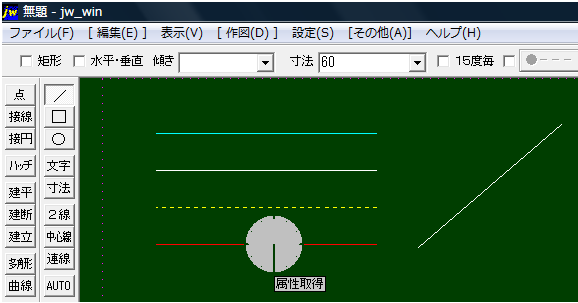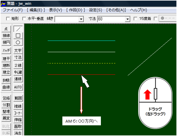 線の属性を習得したい線上にマウスを合わせドラッグしたままAM6:00方向へ マウスを移動します。