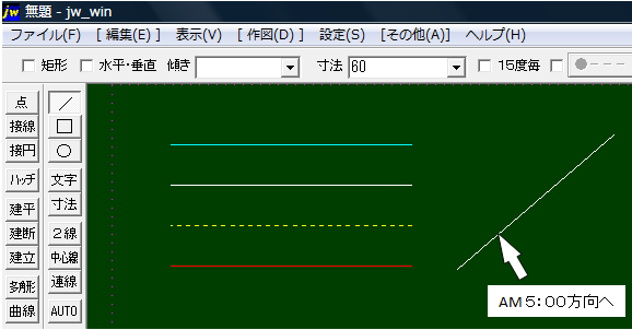 次に、属性変更したい線上でドラッグAM5:00方向へマウスを移動します。