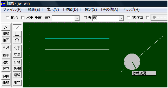 クロックメニューが機能して、線種変更の表示が出た所でドラッグを放します。