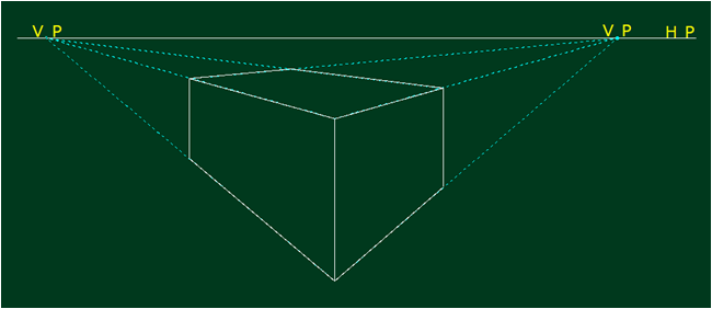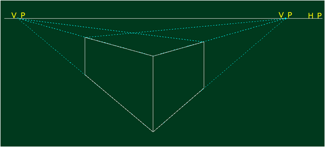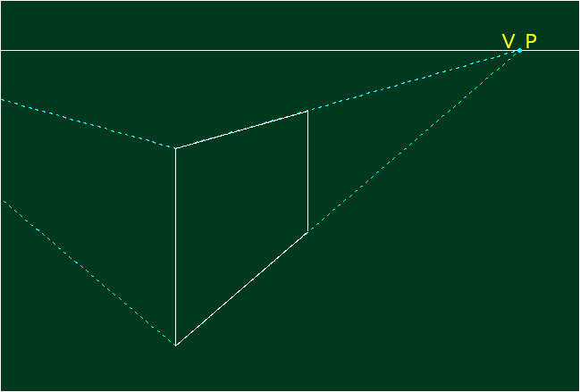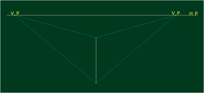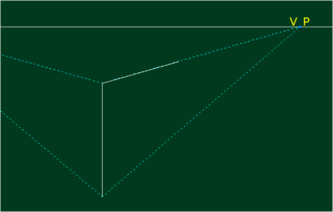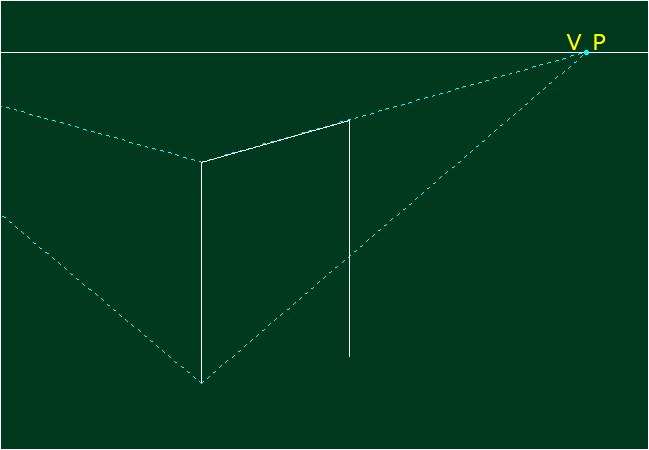ビルの側壁コーナー部分へVPから集中線を引く。