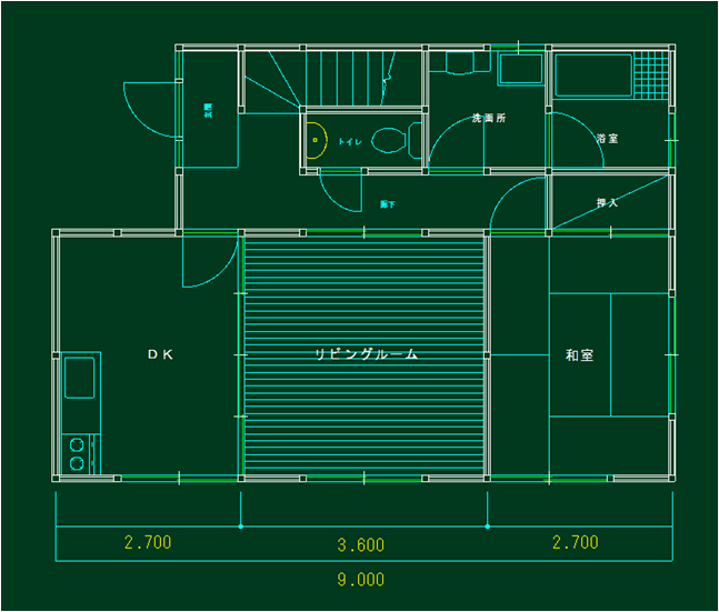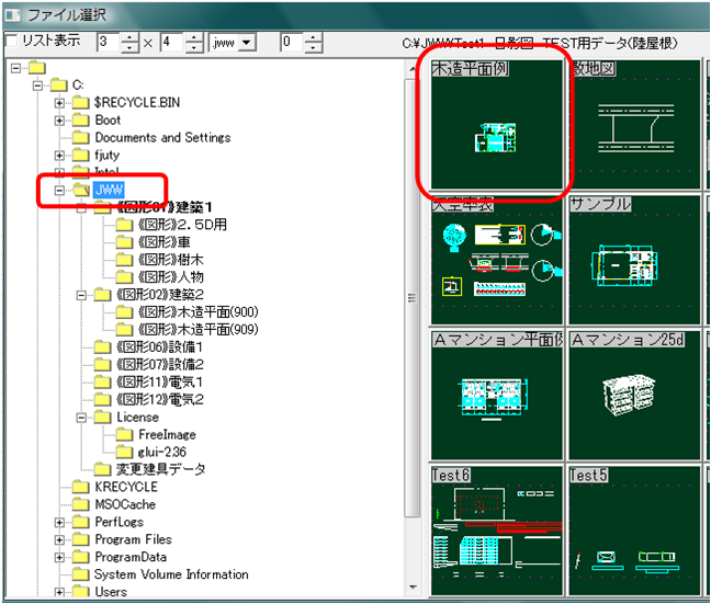 メニューバーにあるファイルから開くをクリック、JWWの木造平面例を選択する。