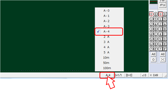 ステータスバーの用紙サイズをクリックして、A4を選択します。