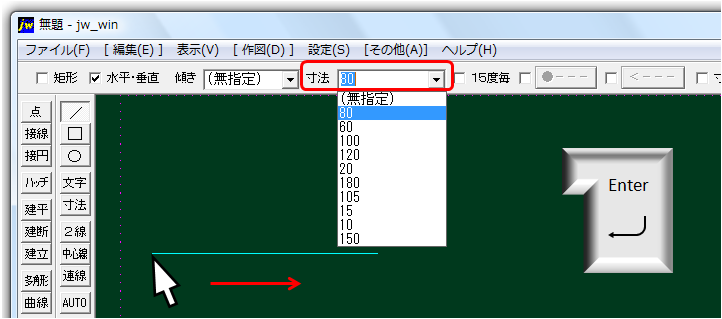 寸法を指定して線を引く