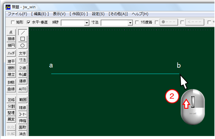 ②任意の位置 bで、クリックして線を確定する。