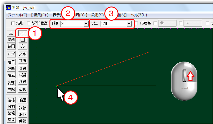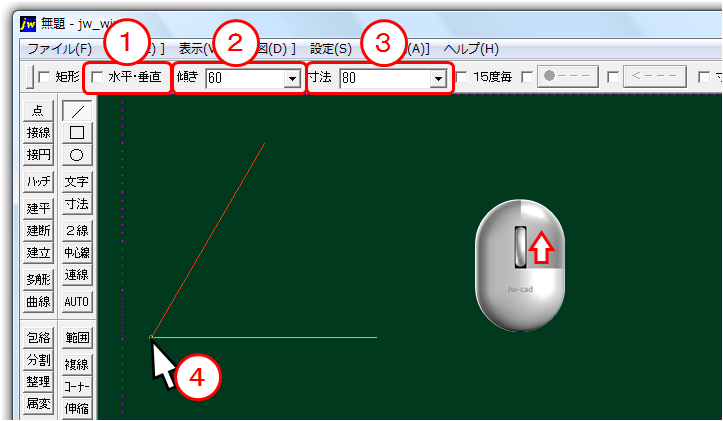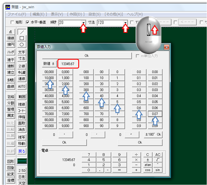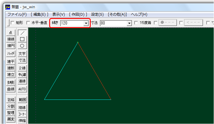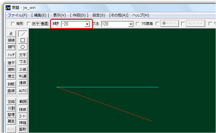 傾き・寸法の▾を右クリックして数値を入力することもできます。
