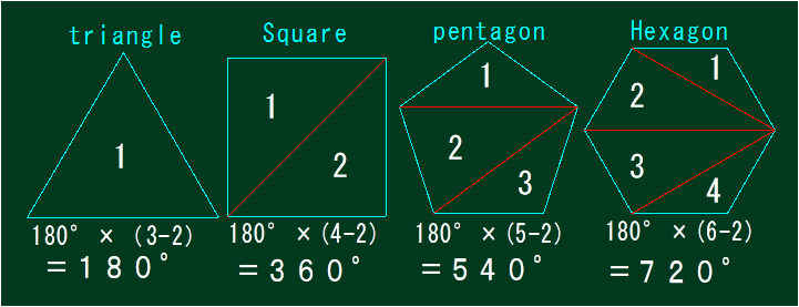 内角の計を角の数で割り、ポリゴンを描いてみましょう。