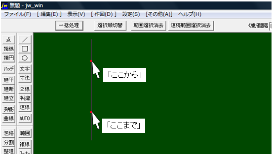 部分消去したい消し始めと、消し終わりをクリック。