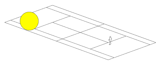 センターネットの位置に大きな画面(PP)を置き4mのボールを映し出すと下の図の様になります。