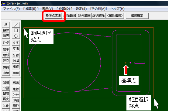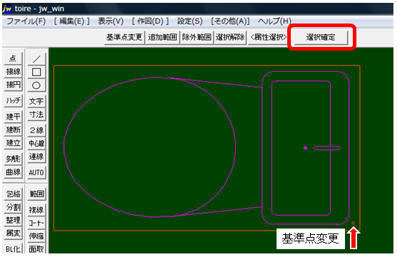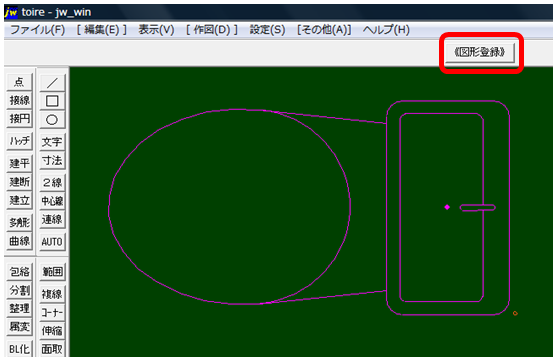 図登コマンドを選択する。→マウスで、図形登録したい図形の範囲選択をする。