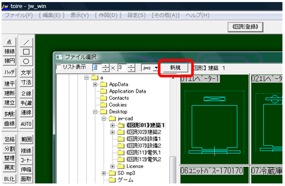 ファイル選択小画面が出るので図形を登録するフォルダを選択する。